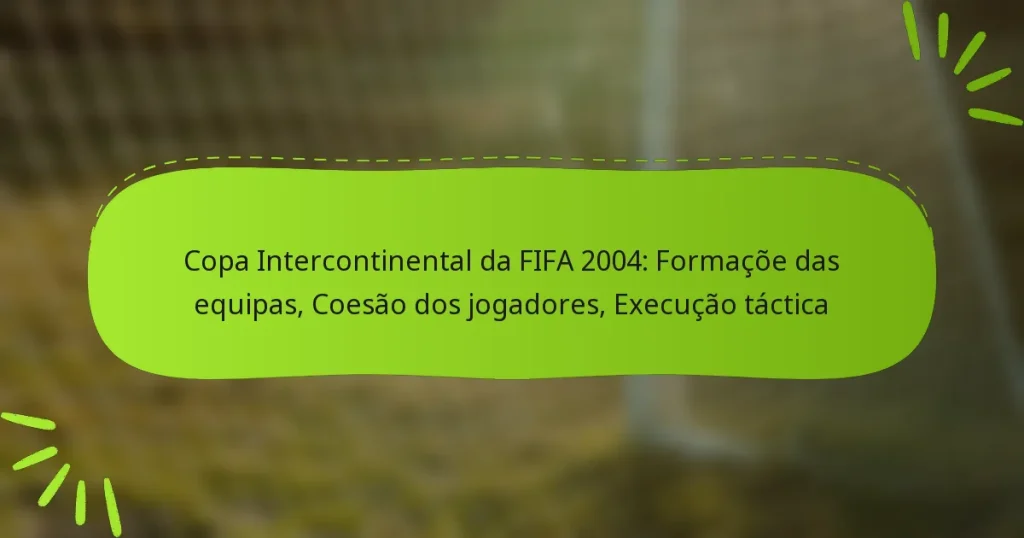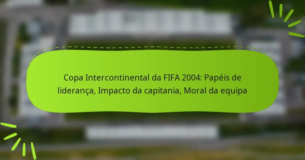 A Taça Intercontinental da FIFA 2004 destacou a influência vital dos papéis de liderança no desempenho e na moral da equipa. Os capitães e treinadores desempenharam papéis essenciais na definição de estratégias e na promoção da unidade, o que impactou diretamente os resultados dos jogos e a motivação dos jogadores. Key sections in the article: Toggle Quais foram os papéis de liderança durante a Taça Intercontinental da FIFA 2004? Principais posições de liderança no torneio Responsabilidades dos treinadores e capitães…