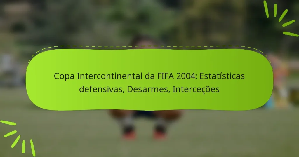 A Taça Intercontinental da FIFA 2004 destacou a importância das estratégias defensivas através de estatísticas impressionantes, incluindo desarmes e interceções. Estas métricas não apenas sublinharam o desempenho individual dos jogadores, mas também influenciaram os resultados gerais dos jogos. O torneio revelou tendências em evolução no jogo defensivo, contrastando com outras competições importantes da época. Key sections in the article: Toggle Quais são as principais estatísticas defensivas da Taça Intercontinental da FIFA 2004? Desarmes totais realizados pelas equipas Interceções totais registadas…