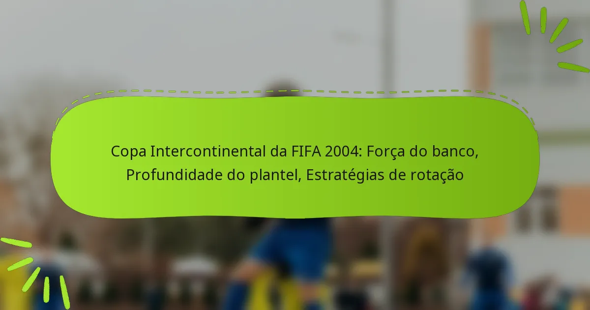 A Taça Intercontinental da FIFA 2004 destacou a importância da força do banco e da profundidade do plantel na obtenção de sucesso. As equipas com substitutos de qualidade estavam melhor posicionadas para se adaptar às exigências do torneio, gerindo efetivamente a fadiga e as lesões dos jogadores. Os treinadores empregaram estratégias de rotação para manter altos níveis de desempenho, garantindo que os seus plantéis se mantivessem competitivos ao longo da competição.