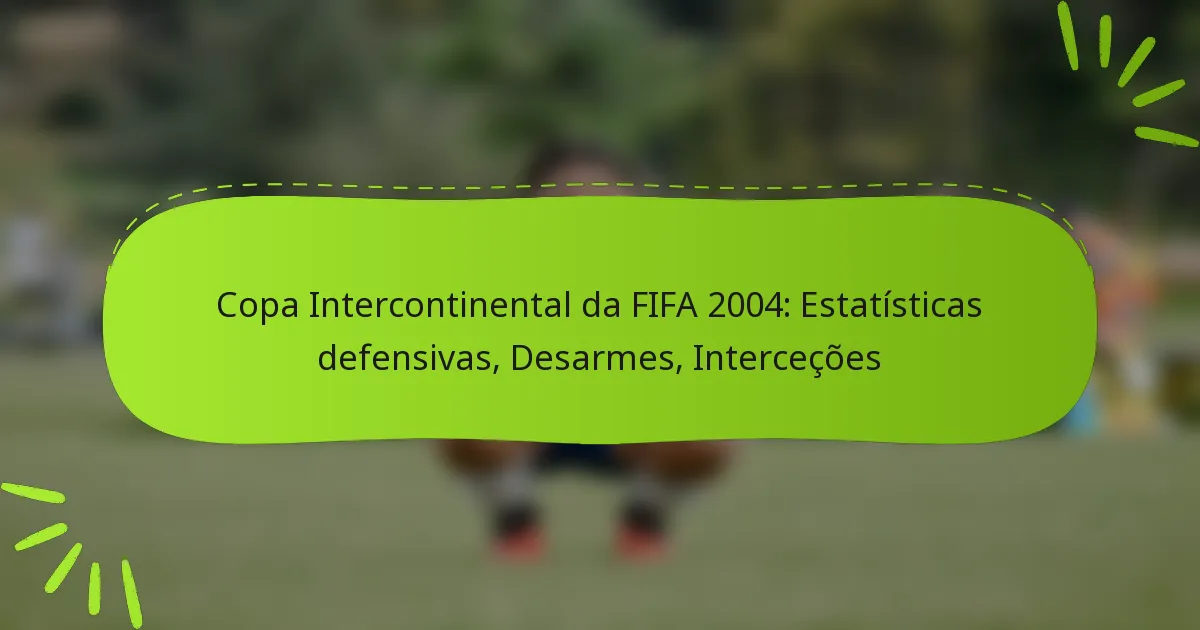 A Taça Intercontinental da FIFA 2004 destacou a importância das estratégias defensivas através de estatísticas impressionantes, incluindo desarmes e interceções. Estas métricas não apenas sublinharam o desempenho individual dos jogadores, mas também influenciaram os resultados gerais dos jogos. O torneio revelou tendências em evolução no jogo defensivo, contrastando com outras competições importantes da época.