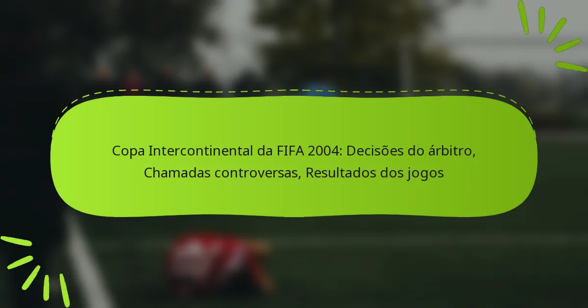 A Taça Intercontinental da FIFA 2004 foi marcada por várias decisões controversas dos árbitros que influenciaram significativamente o resultado da partida. Chamadas-chave de penálti, marcações de fora de jogo e faltas críticas levaram a debates acalorados entre adeptos e especialistas, moldando, em última análise, o resultado final.