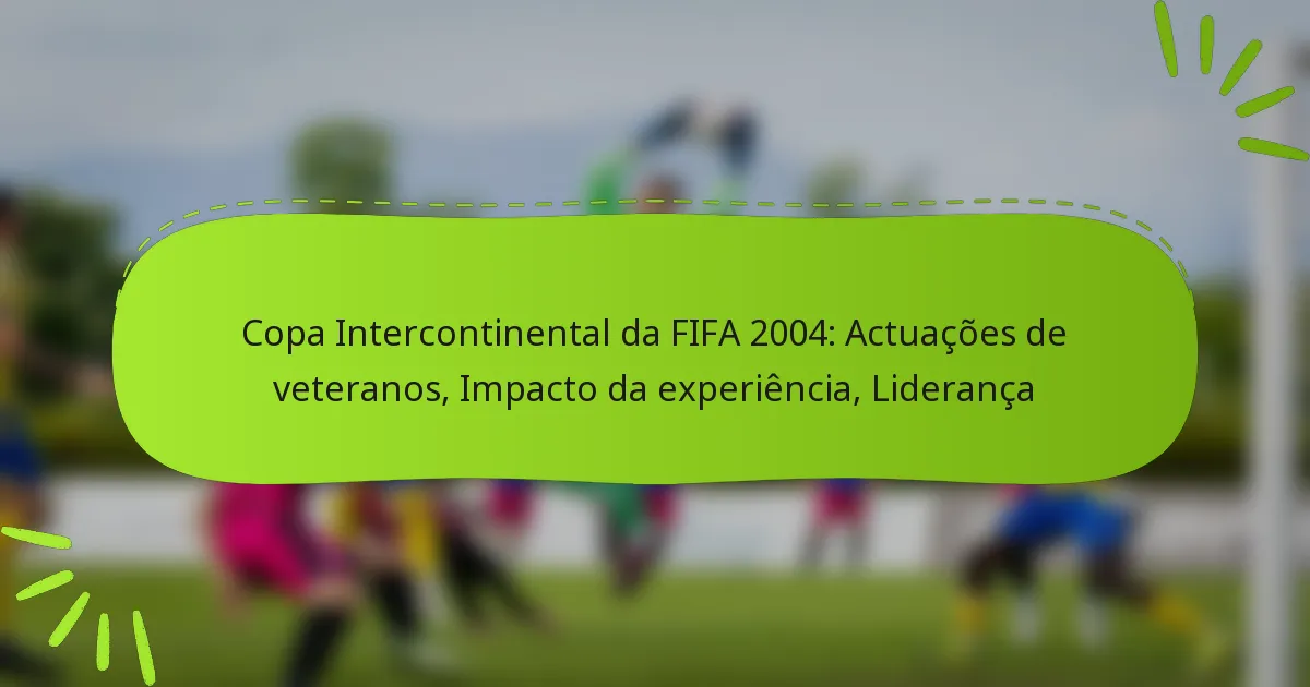 Os jogadores veteranos na Taça Intercontinental da FIFA 2004 demonstraram qualidades de liderança essenciais, como resiliência emocional, pensamento estratégico e a capacidade de promover a coesão da equipa. A sua experiência não só influenciou o desempenho em campo, mas também proporcionou mentoria aos colegas mais jovens, melhorando a dinâmica geral da equipa.